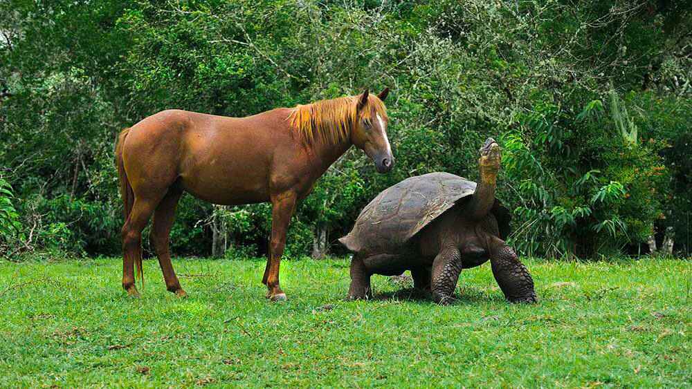 An Aldabra tortoise can get 550 pounds and four feet long. They are also very heavy and could destroy furniture. With an animal that big it is best to check if it is legal to own one in your state.