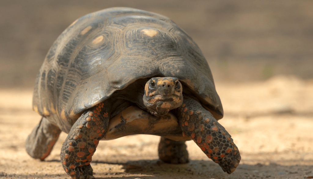 A baby Red-foot tortoise should be housed in an indoor enclosure at least 3 feet by 2 feet. As they grow, you’ll need to upgrade the enclosure size. Use a substrate that retains moisture, such as coconut coir, cypress mulch, or a mix of topsoil and play sand. The substrate should be kept moist but not soggy to keep in the humidity. Provide hiding spots using half logs, plants, or other structures. They enjoy a place to hide and feel safe.